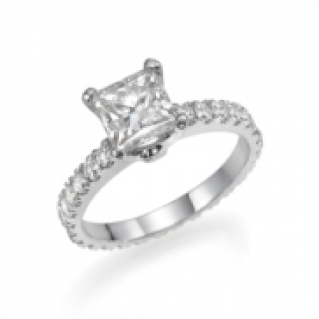 טבעת אירוסין משובצת ביהלום פרינסס ויהלומי צד