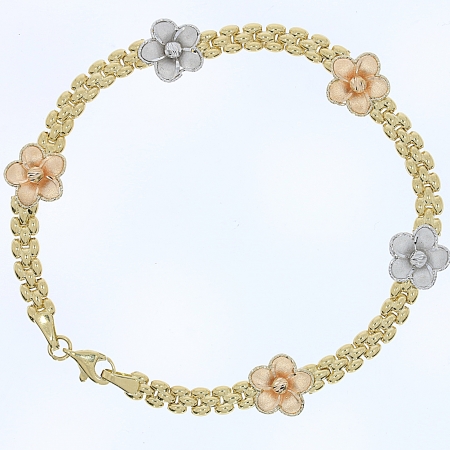 צמיד שרשרת עם פרחים בזהב ורוד