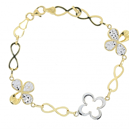 צמיד שרשרת פרחים בזהב משולב צהוב לבן ורוד