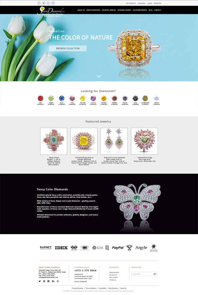 אתרי מסחר אלקטרוני מבוססי EasyStock פותחו במיוחד עבור תעשיית היהלומים והתכשיטים, עם תכונות כמו  מנוע מהיר ומדויק במיוחד לחיפוש יהלומים, מודול "עצב לעצמך טבעת"‫, תמחור דינמי ותכונות נוספות. הפתרונות שלנו מסייעים לך בבנייה ותפעול שוטף של אתר המסחר האלקטרוני, ומאפשרים לך להתמקד בתחומי הליבה של העסק.