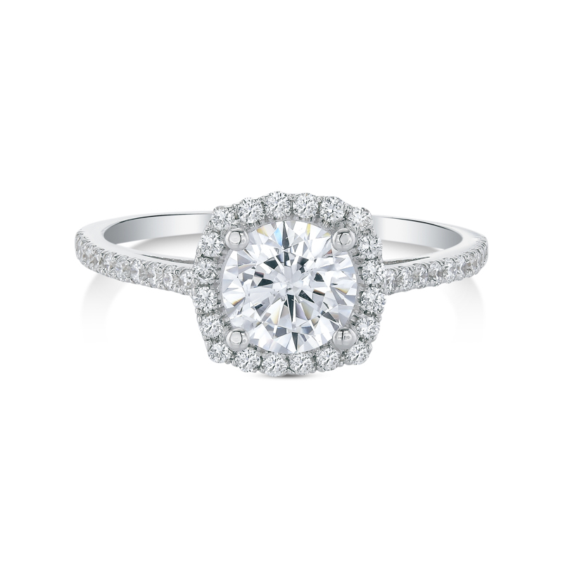RT-20022 טבעת ארוסין סוליטר בצורת יהלום קושן עם יהלומי צד