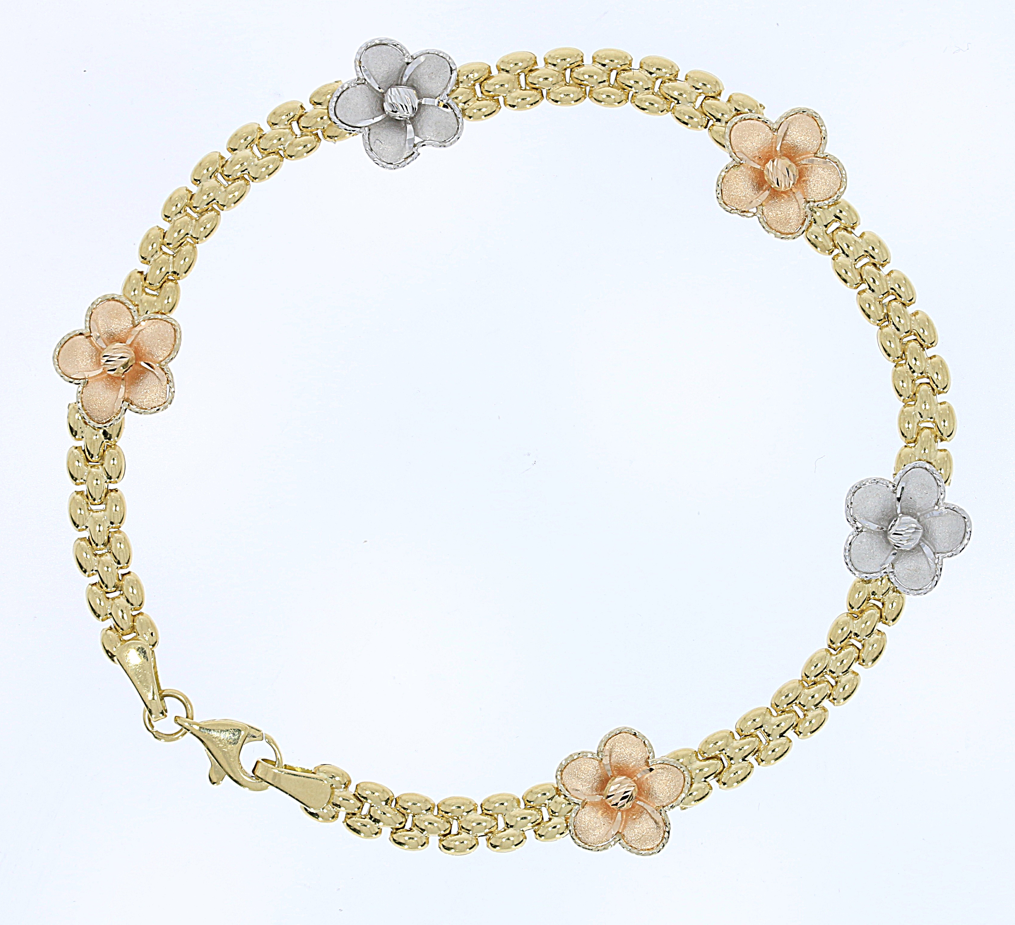 צמיד שרשרת עם פרחים בזהב ורוד